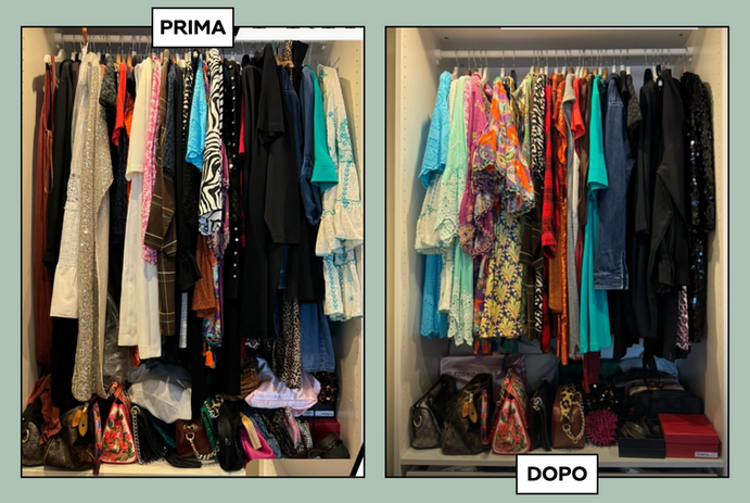 Dopo la sessione avrai un armadio più organizzato e più facile da gestire, con indicazioni pratiche su come mantenere nel tempo l’ordine per sfruttare meglio i capi presenti.